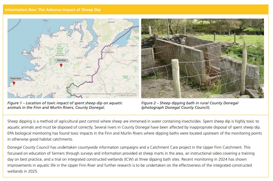 According to the EPA, several rivers in County Donegal have been affected by inappropriate disposal of spent sheep dip.