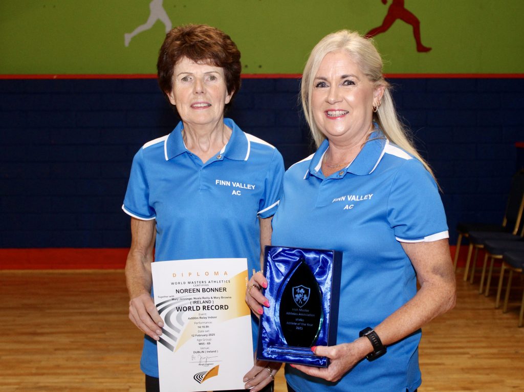 Finn Valley AC athletes Sinead McConnell and Noreen Bonner were honoured by the Irish Master Athletics Association at the weekend.