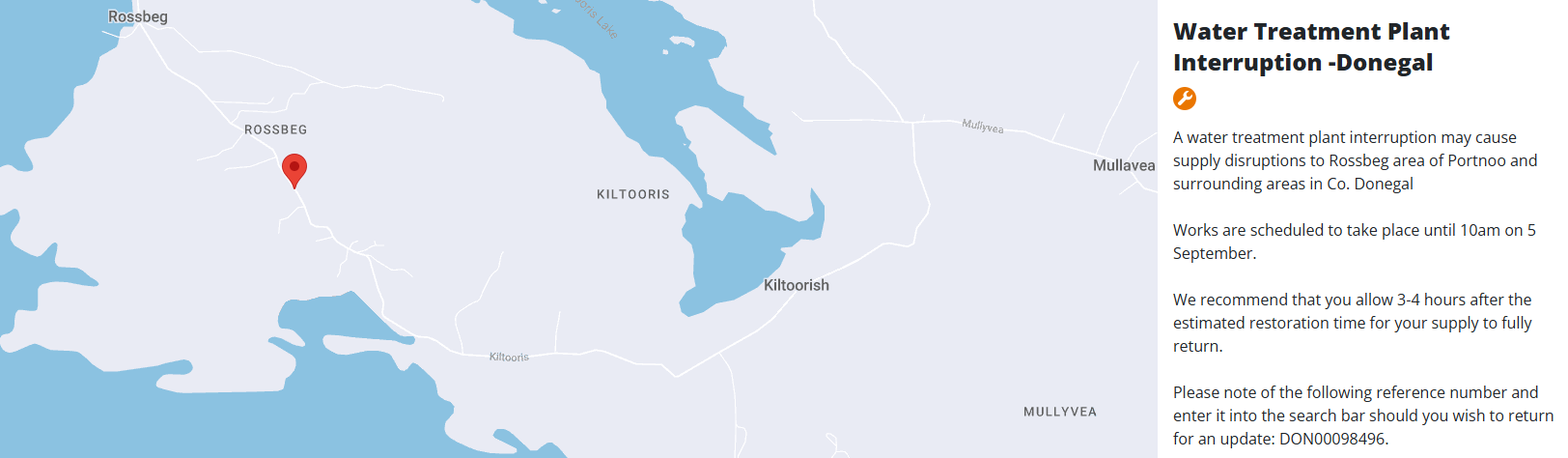 Uisce Eireann says a water treatment plant interruption in Portnoo may cause supply disruptions in Rossbeg and surrounding areas this morning.