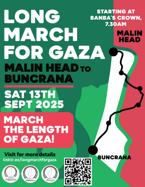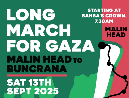 A 25 mile march is taking place tomorrow from Malin Head to Buncrana to hight the campaign for an end to Israeli actions in Gaza, and an immediate opening of the borders for aid.