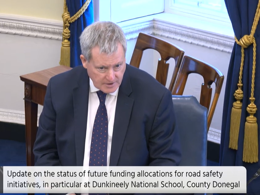 Minister O’Donnell said the school hasn’t applied for inclusion in the Safe Routes to School Scheme, Senator Boyle told him they don’t have time to wait…….
