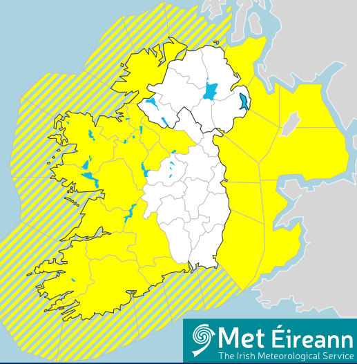 The warning covers Donegal, Cavan, Longford and the provinces of Connaught and Munster.