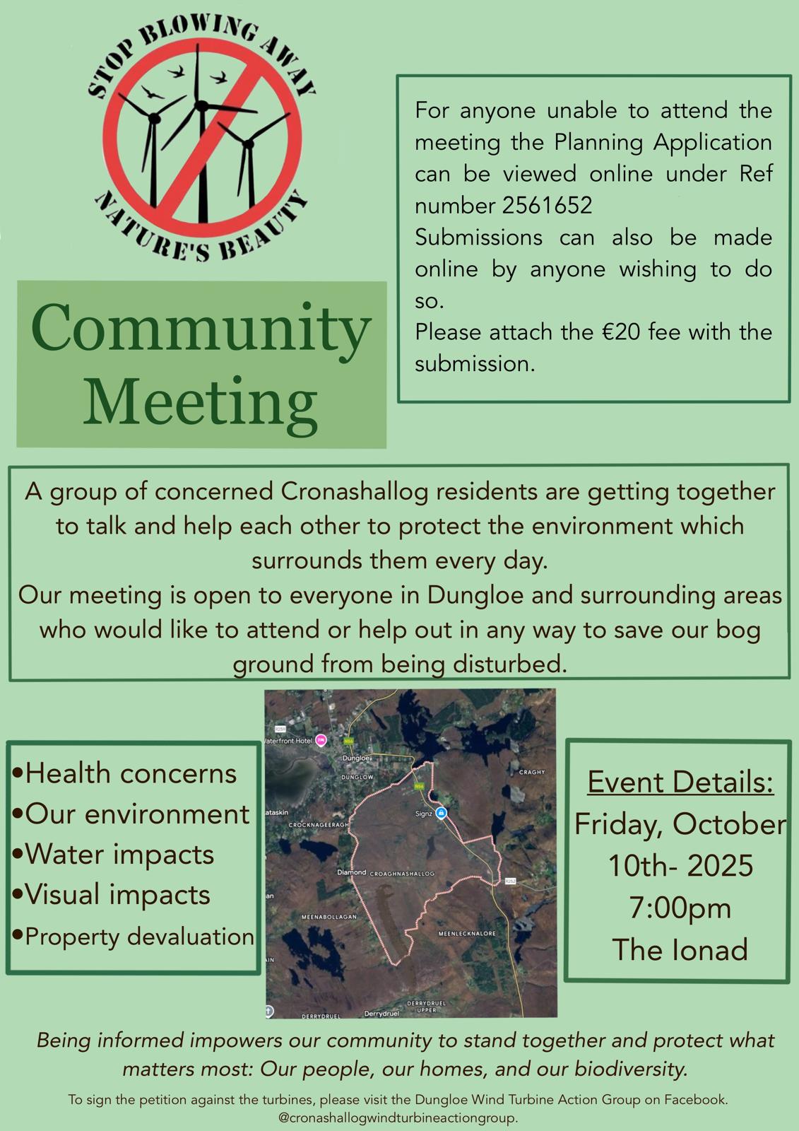 The Dungloe Wind Turbine Action Group meeting has been postponed until next Friday.