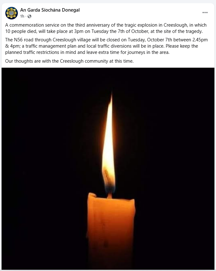 Today marks the third anniversary of the Creeslough explosion, in which 10 people lost their lives.