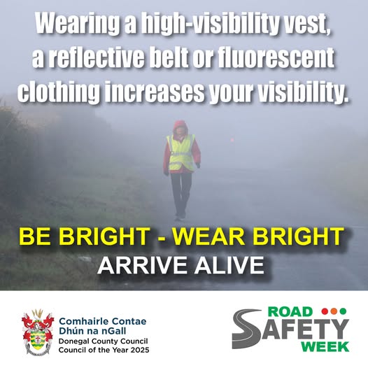 Donegal County Council are urging people to wear fluorescent and reflective material when walking, so that you can be seen from morning to night.