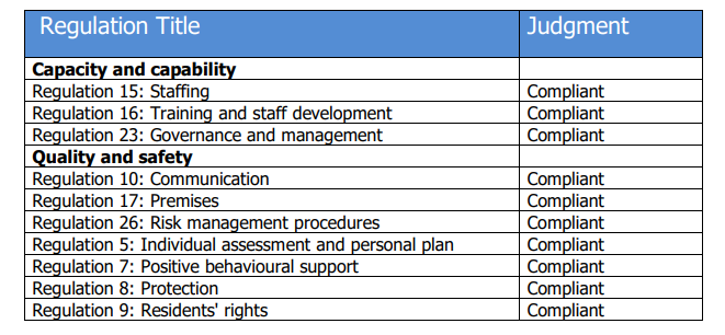 A HIQA inspection has found that Dunwiley, a designated centre for adults with disabilities, was fully compliant.