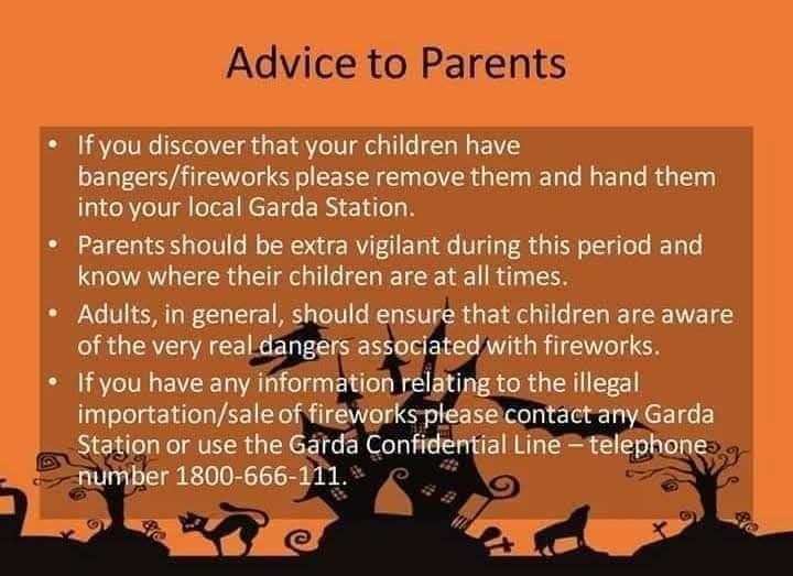 If you have any information relating to the illegal importation or sale of fireworks, please contact the Garda Confidential Line or any Garda Station.