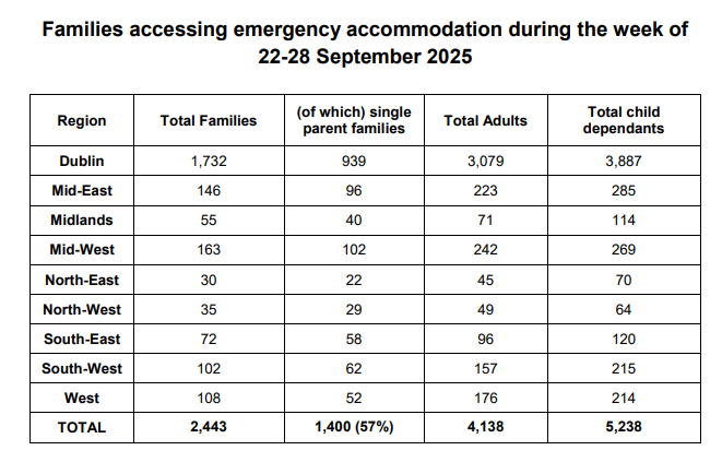 35 families have registered as homeless in the North West, up one on August, while the number of dependent children in need of accommodation, meanwhile, is down one to 64.