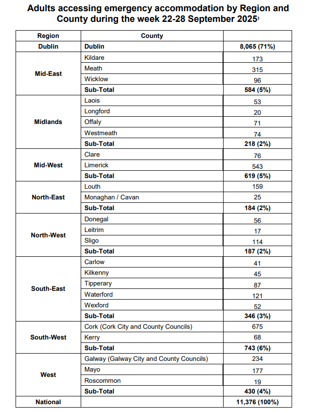 Figures published today by the Department of Housing show 187 adults were without a home in the region at the end of September, up slightly on the August total of 182.
