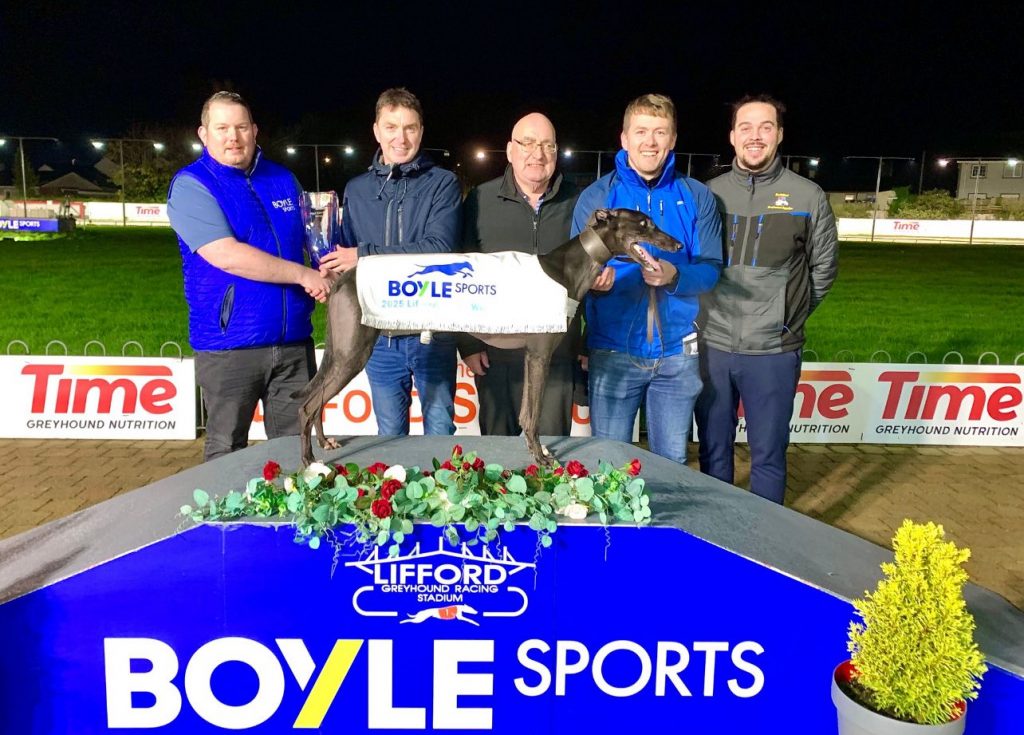 A Ballybofey syndicate was celebrating after their dog Ballymac Jedgar won one of the three finals at Lifford Greyhound Stadium on Saturday evening.