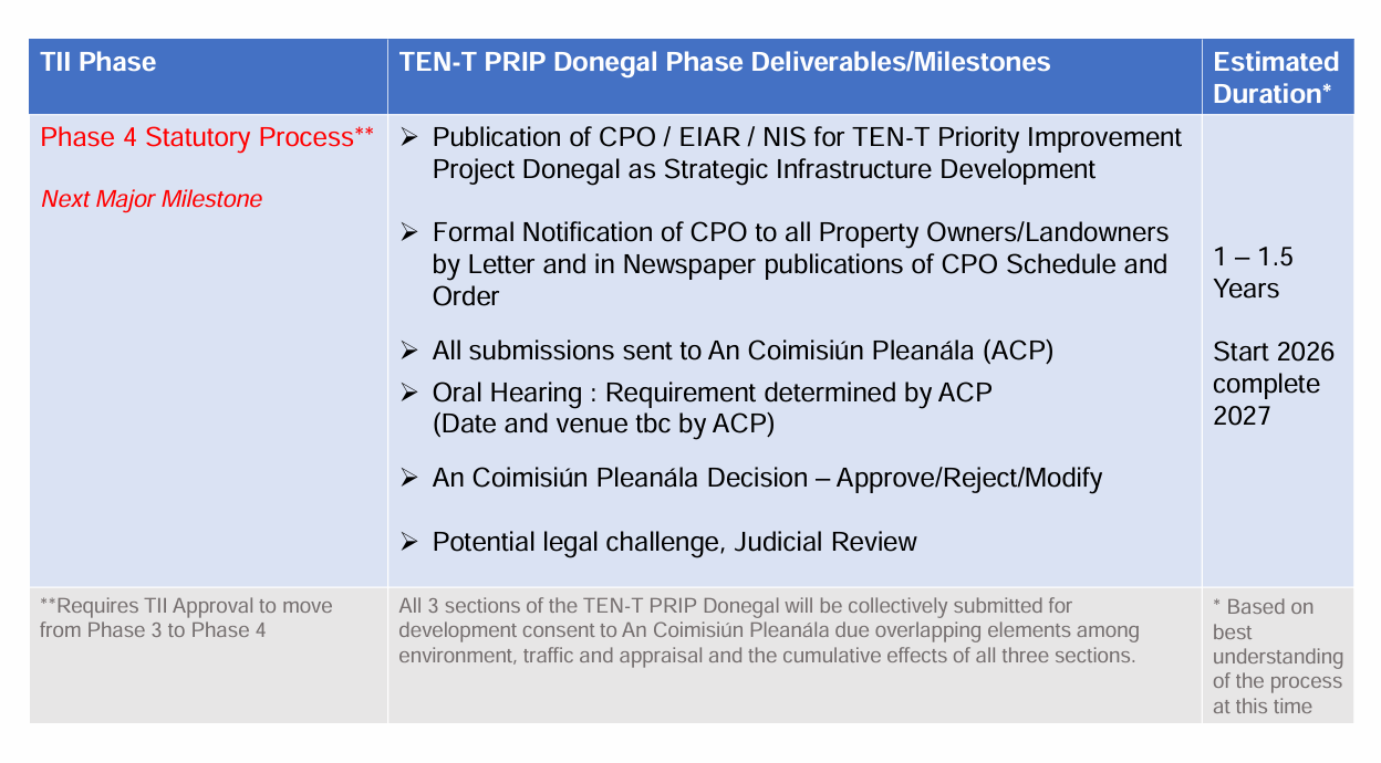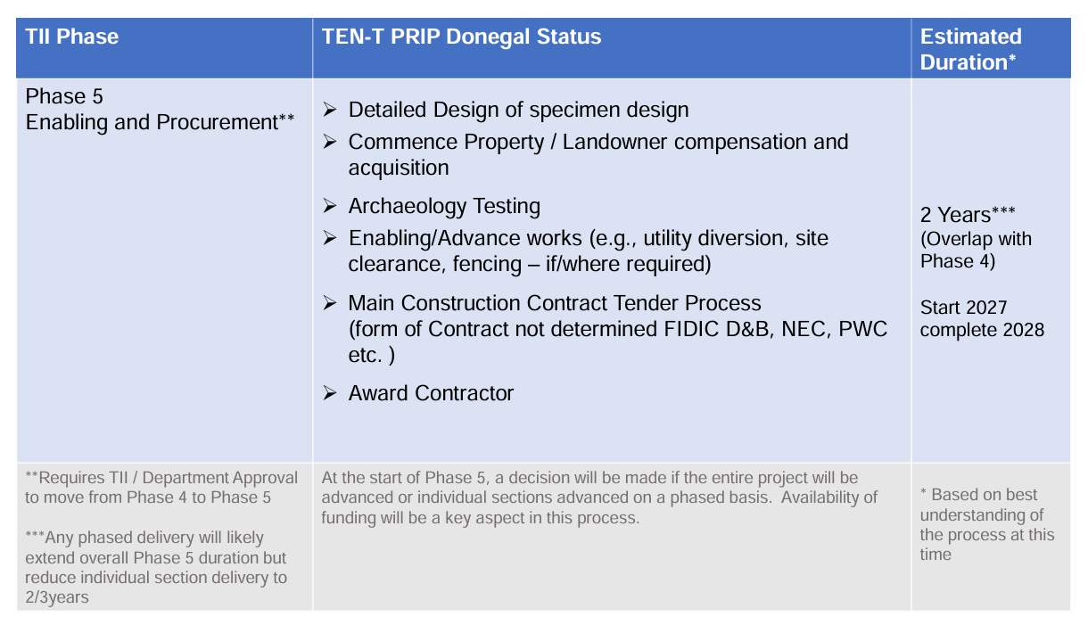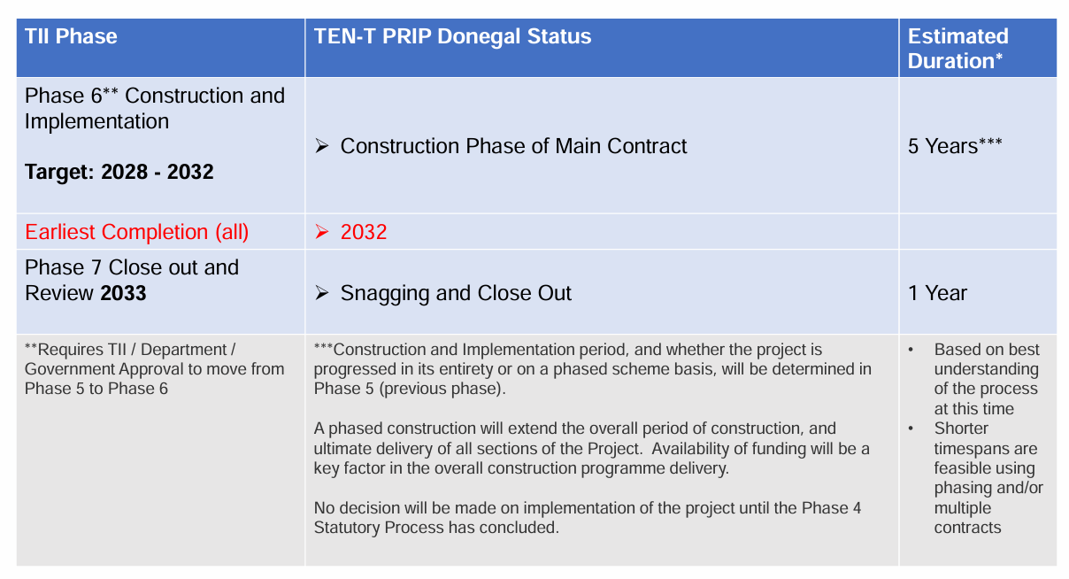 As Donegal County Council members absorb the latest update on the Ten-T project, officials say the plan is to have construction complete by 2032, with any problems addressed and the scheme fully closed out the following year.