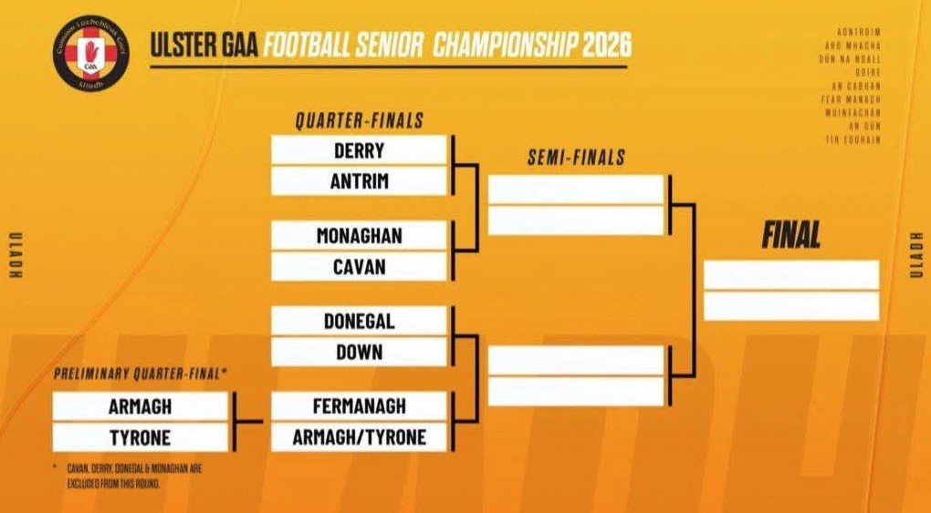 Donegal will play Down at home in the quarter-finals of the 2026 Ulster Senior Football Championship after the provincial draws were completed at Croke Park this evening.