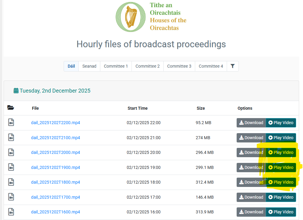 Then go to the link for December 2nd. The debate ran from 6pm until 8.30pm. Open the ‘play video’ buttons as indicated below.