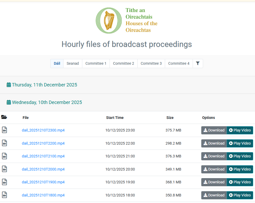 Click ‘Play Video’ for each hour in turn. When you get to the end of the top line, click the ‘Thursday 11th December link, click ‘Play Video’ on the 00:00 line. The debate concludes during that hour.