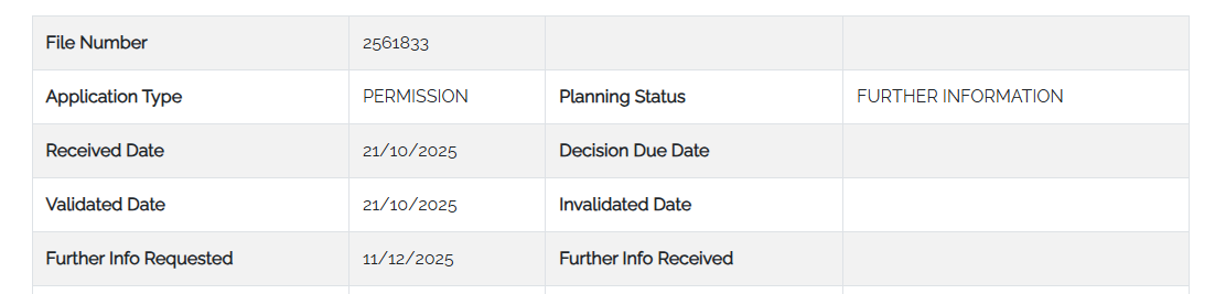 The application was lodged on October 24th, with two submissions made opposing the development.
