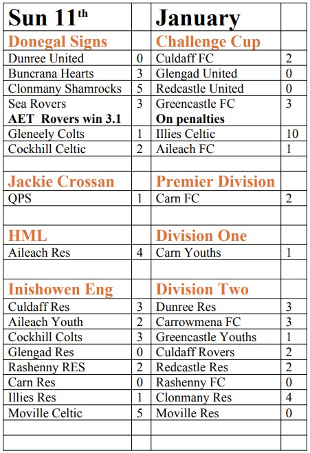 Home / News & Sport / Inishowen Football League Results – Sunday 11/01/26