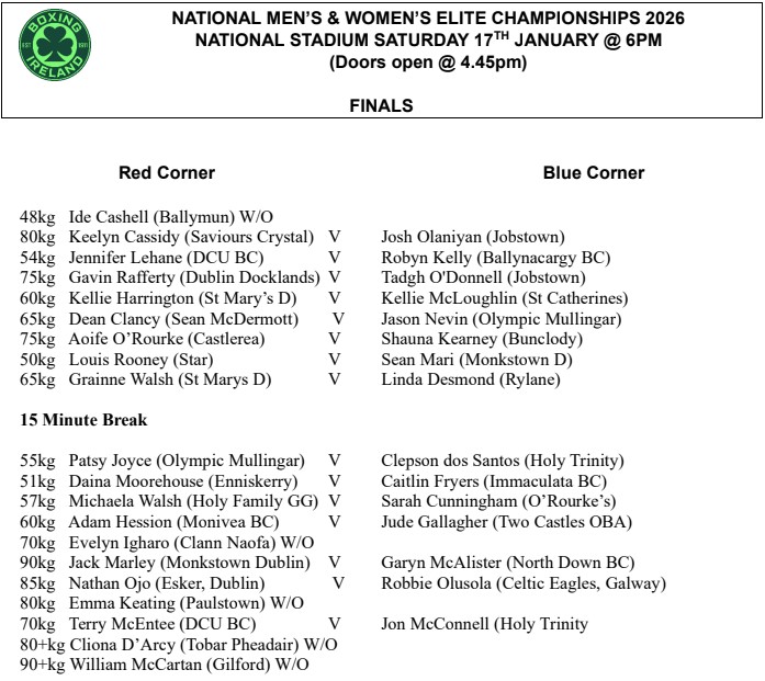 The line-up of the Boxing Ireland Elite Championship finals has been completed following yesterday evening’s semi-finals.