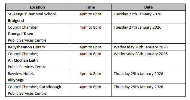 Donegal County Council has published the Proposed Variation (No.1) to the County Development Plan 2024-2030 for public consultation between the 16th of January and the 13th of February 2026.