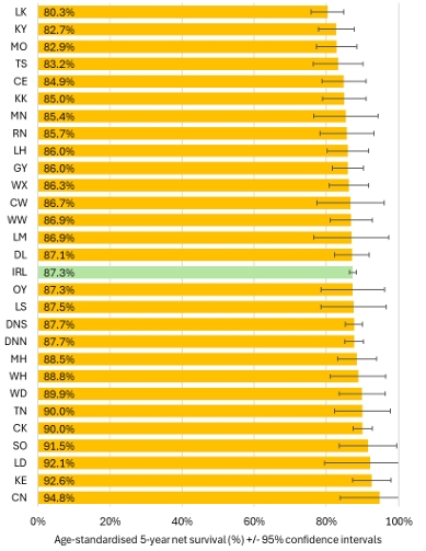 The largest discrepancy in the country was 14.5% between those in Limerick, at 80.3%, and those in Cavan, whose net survival rate was 94.8%.