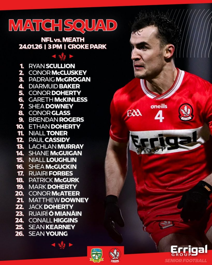 Derry manager Ciarán Meenagh has named his team for Saturday’s National Football League Division 2 opener against Meath at Croke Park.