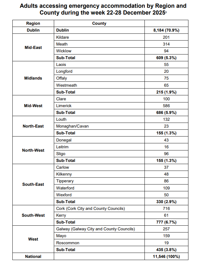 Figures published today by the Department of Housing show 155 adults were without a home in the North West at the end of December, down 9 on the November figure of 164, a fall of just over 5%.