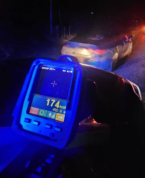 Less than an hour later, the same vehicle was caught being driven at 174km/hr in an 80km/hr speed zone.