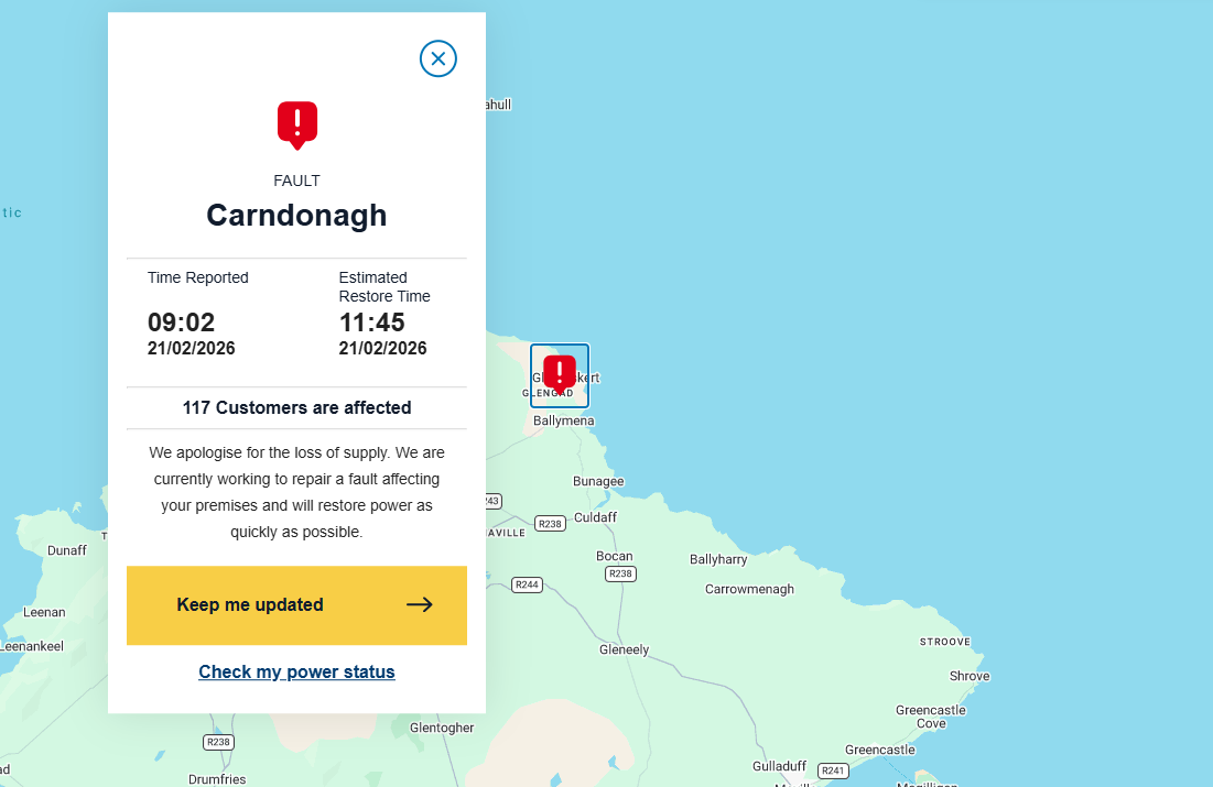 ESB say they apologise for the loss of supply and are working to resolve the issue as soon as possible.