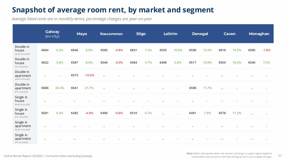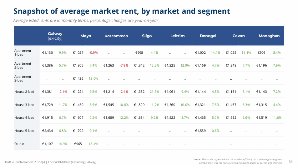 A snapshot of the average rent, excluding Galway, increased across the board in Donegal compared to late 2024.