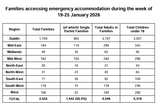 Nationally, 17,112 people were recorded as being homeless at the end of January, an increase of 2.26% on December.