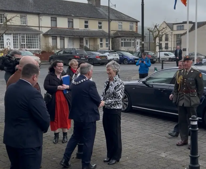 President Catherine Connolly has arrived at County House in Lifford for a Donegal County Council function.