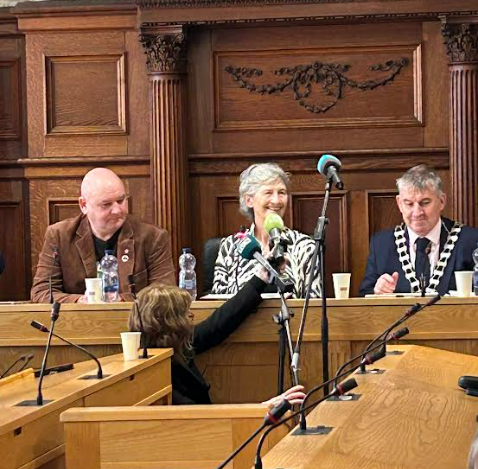 She was greeted by Cathaoirleach Cllr Paul Canning and Irish Committee Cathaoirleach Cllr Michael Cholm MacGiolla Easbuig.