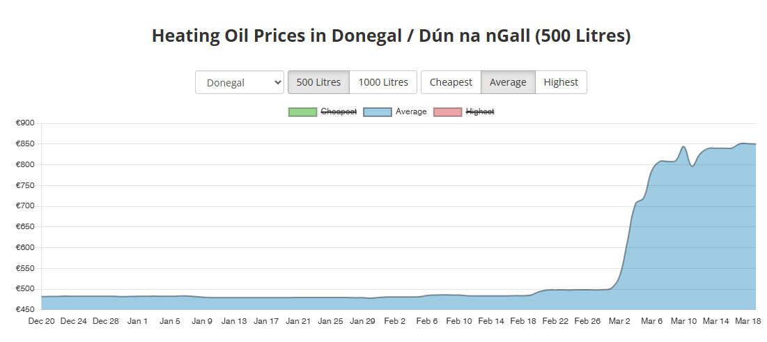Deputy Charles Ward said with very limited transport options and a heavy reliance on oil for home heating, the rises in fuel costs are having a disproportionate impact on families in Donegal.