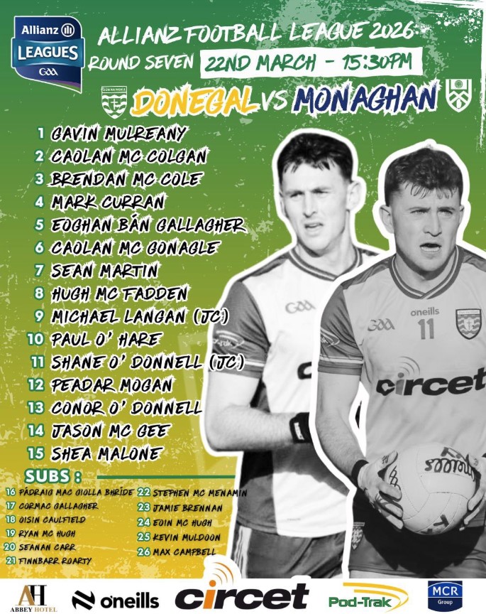 Donegal have made six changes to their starting line-up for this afternoon’s clash against Monaghan.