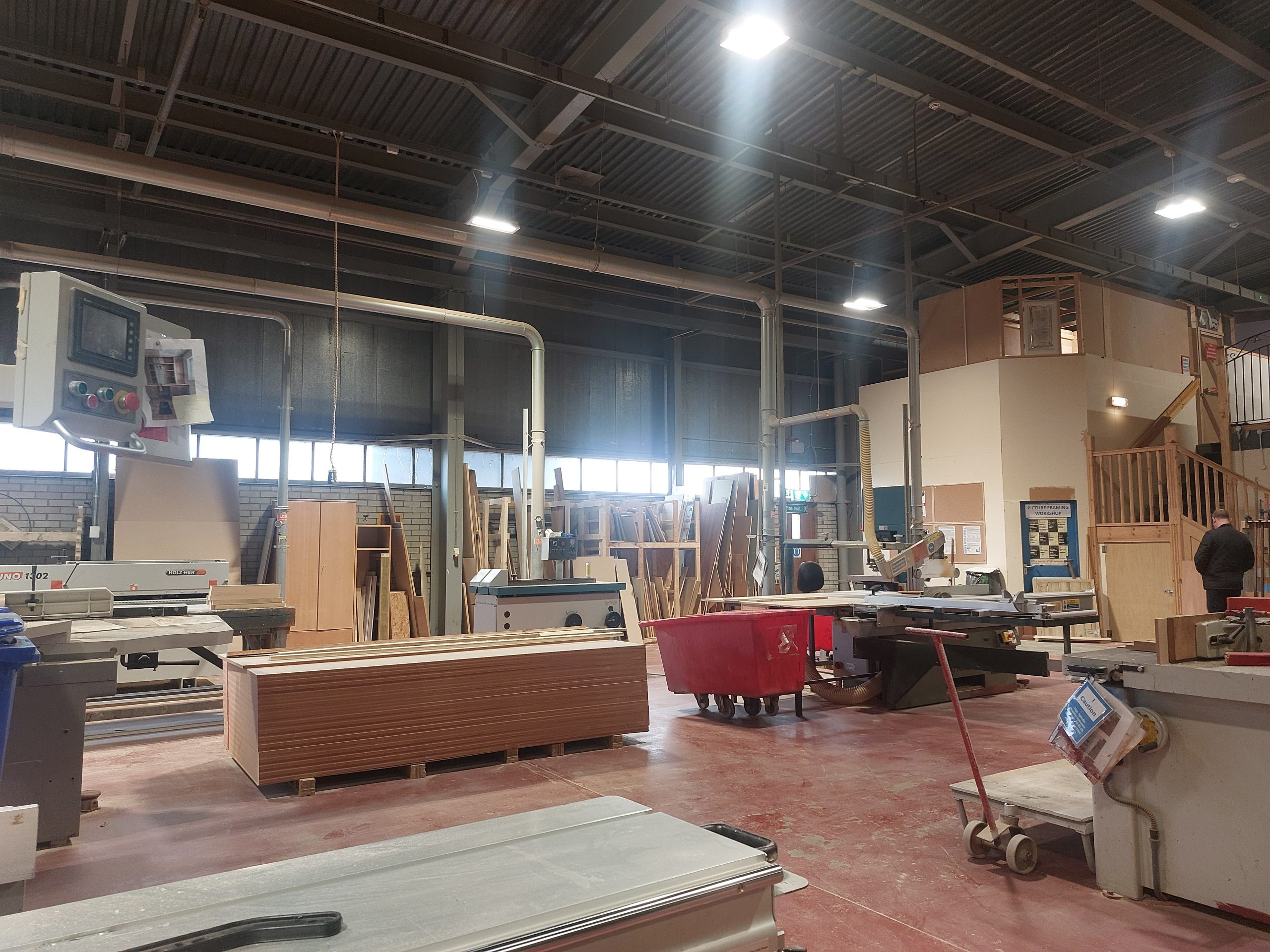 The prison includes a large workshop where inmates build a range of furniture for use in jail cells across Northern Ireland, as well as other projects, including swing sets for local community groups.