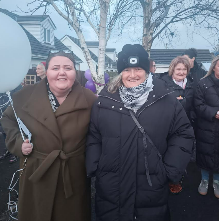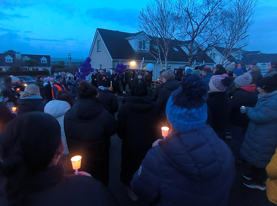Over 150 people gathered outside the Lifeline Inishowen premises in Carndonagh last night for a candlelit vigil in solidarity with the family and friends of Amy Doherty who was murdered in Derry last weekend, and over 60 other women killed on both sides of the border over the past six years.