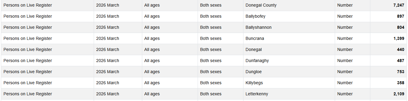 There were 7,247 people on the Live Register in Donegal at the end of March, a 3% fall on the same period last year.