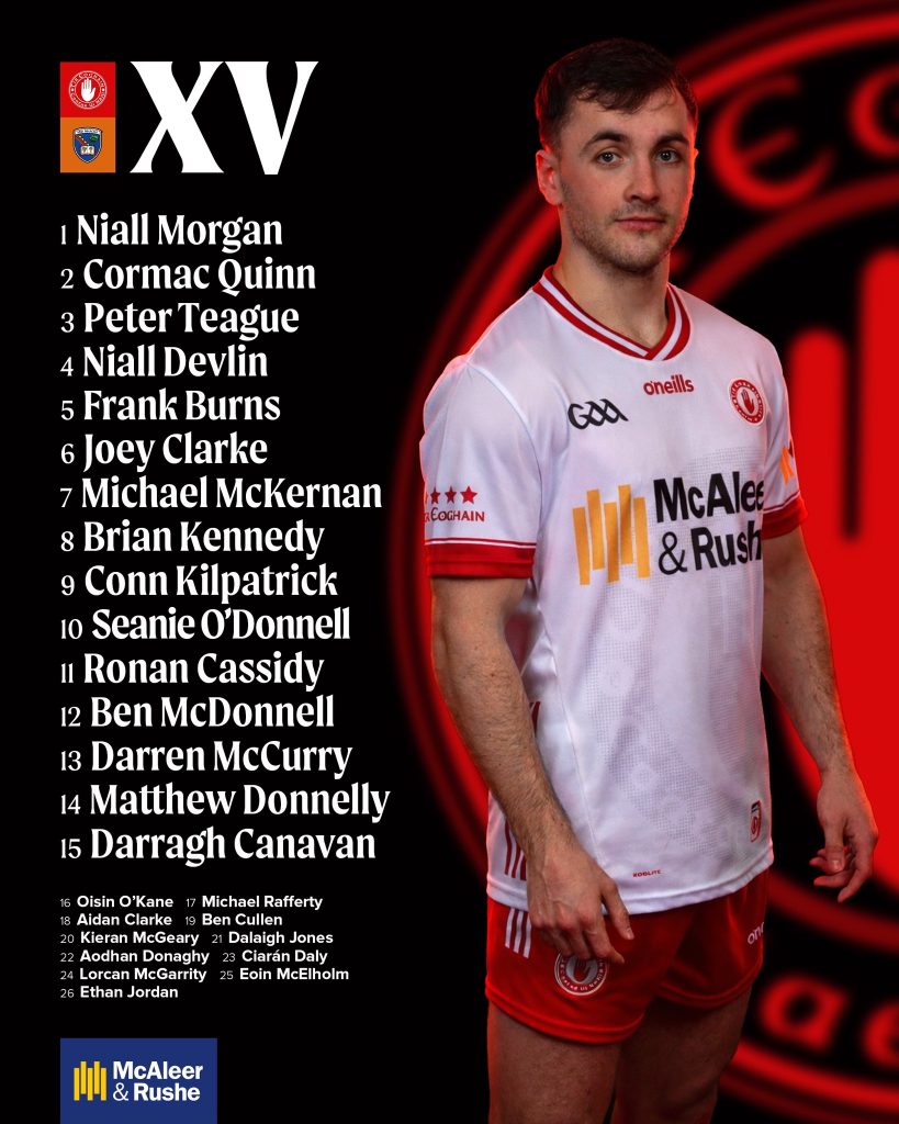 Niall Morgan is back between the Tyrone posts while Michael McKernan has returned to the starting line-up and is named at wing-back with Ben Cullen dropping out.
