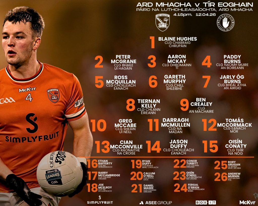 Armagh and Tyrone have named their sides for Sunday’s Ulster Senior Football Championship Preliminary clash at the Athletic Grounds.