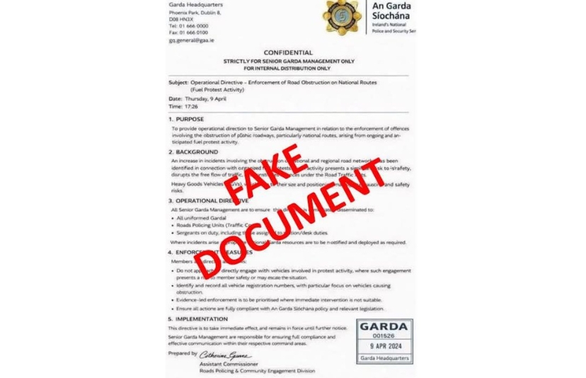 Gardaí in Donegal are warning the public to be aware of a fake document that is circulating on social media and messaging apps.