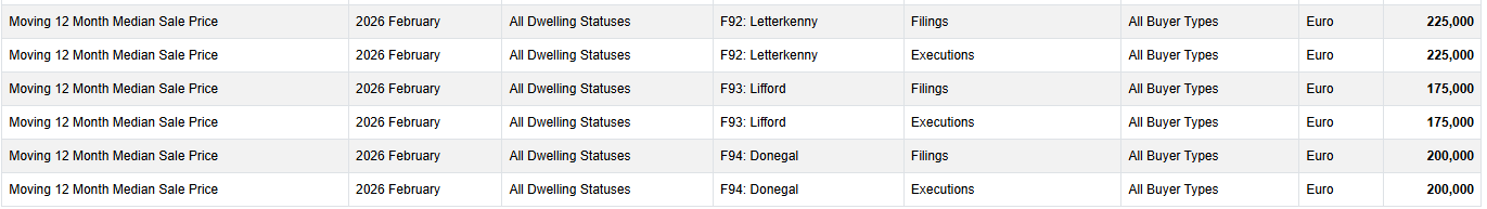 When broken into Eircode areas, the F93 area covering Lifford and Inishowen recorded the second lowest median price in the country at €175,000. F94 covering South and West Donegal recorded a median price of €200,000, while the F92 Letterkenny area returned the county’s highest median price at €225,000.