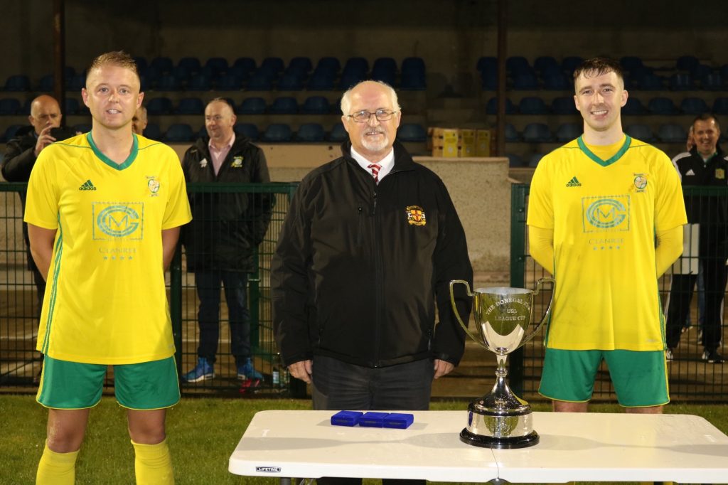 Bonagee United ended their season by lifting the Donegal News Ulster Senior League Cup on Tuesday evening. They beat Letterkenny Rovers 3-2 in the final played at Ballyare. Garvan Grant bagged two late goals in the closing minutes to steal the tie from the grasp of Rovers. Ryan Rainey scored the other for Bonagee while