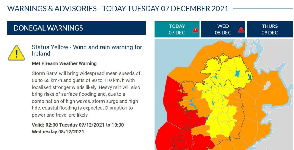Orange wind warning for Donegal from 2am to 2pm tomorrow Read More »